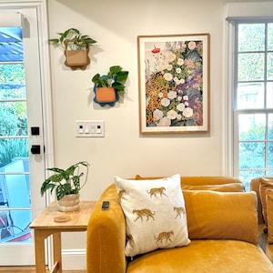 These little hanging pots are so cool and I love the aesthetic, I haven’t seen anything like it so it was an instant purchase for me. I was nervous about the look of it being plastic and 3d printed but it doesn’t not seem like it when hung up, and looks fantastic! They are nice and light weight so once I potted a plant in them only one screw was needed to hang them. I already bought more, very happy with my purchase! I would love if there were even more color options in the future!